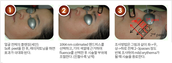 ÇǺΠ±í¼÷ÀÌ ÀÖ´Â »ö¼Ò ¼¼Æ÷¸¦ ÆÄ±«ÇÔ°ú µ¿½Ã¿¡ Äݶó°ÕÀ» »ý»êÇÏ´Â ¼¶À¯¼¼Æ÷¸¦ ÀÚ±ØÇÏ¿© ÀüüÀûÀ¸·Î ź·ÂÀÌ ¶³¾îÁø óÁø ÇǺÎÀÇ ¸®ÇÁÆÃ, ÇǺΠ¸ð°øÄ¡·á, ÇǺÎÀâÆ¼, Çʸµ, Åä´× È¿°ú±îÁö Çѹø¿¡ ¾òÀ» ¼ö ÀÖ´Â ½Å°³³ä ¸ÖƼ ·¹ÀÌÀú Ä¡·á¹ý À̶ó°í ÇÒ ¼ö ÀÖ½À´Ï´Ù. ½Ã¼ú½Ã°£Àº 5ºÐÁ¤µµ ¼Ò¿äµÇ°í, 1~2ÁÖ °£°ÝÀ¸·Î 5~10ȸ Á¤µµ Ä¡·á¸¦ ¿äÇÕ´Ï´Ù.