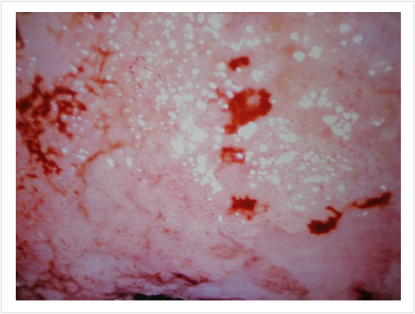 Àüü ÀڱðæºÎ¸¦ ħ¹üÇÑ °áÀý¼ºÀ̰í À¯µÎ»óÀÇ Ç¥¸éÀ» °¡Áø ¸Å¿ì µÎ²¨¿î ¹é»ö »óÇǸ¦ °í¹èÀ²·Î °üÂûÇÑ ¸ð½ÀÀÌ´Ù. ¹ÝÁ¡»ó°ú ºñÁ¤Çü Ç÷°üµéÀÌ °üÂûµÇ°í ÀÖ´Ù. Á¶Á÷ ¼Ò°ßÀº 2mmÀÇ ¹Ì¼¼ ħÀ±¾ÏÀ» ³ªÅ¸³µ´Ù.