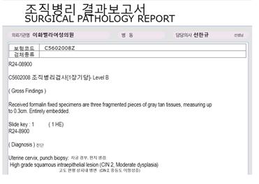 À§ÀÇ ±×¸²ÀÇ Á¶Á÷°Ë»ç¸¦ ½ÃÇàÇÒ¶§ ÁúÈ®´ë°æ°Ë»ç¿¡¼ ºñÁ¤»óÀûÀÎ (10³âÈÄ¿¡ ¾Ï¼¼Æ÷·Î º¯ÇüµÉ¼ö ÀÖ´Â)°÷¿¡¼ Á¶Á÷°Ë»ç¸¦ ½ÃÇàÇØ¾ß Á¤È®ÇÑ Áø´ÜÀÌ ³ª¿Ã¼ö ÀÖ´Ù. ¸¸¾à¿¡ ´Ù¸¥ ºÎºÐ¿¡¼ ÁúÈ®´ë°æÀ» º¸Áö¾ÊÀº Á¶Á÷ °Ë»ç´Â °Ë»ç°á°ú¿¡ ¿À·ù¸¦ ¹üÇÒ¼öÀÖ´Ù.
